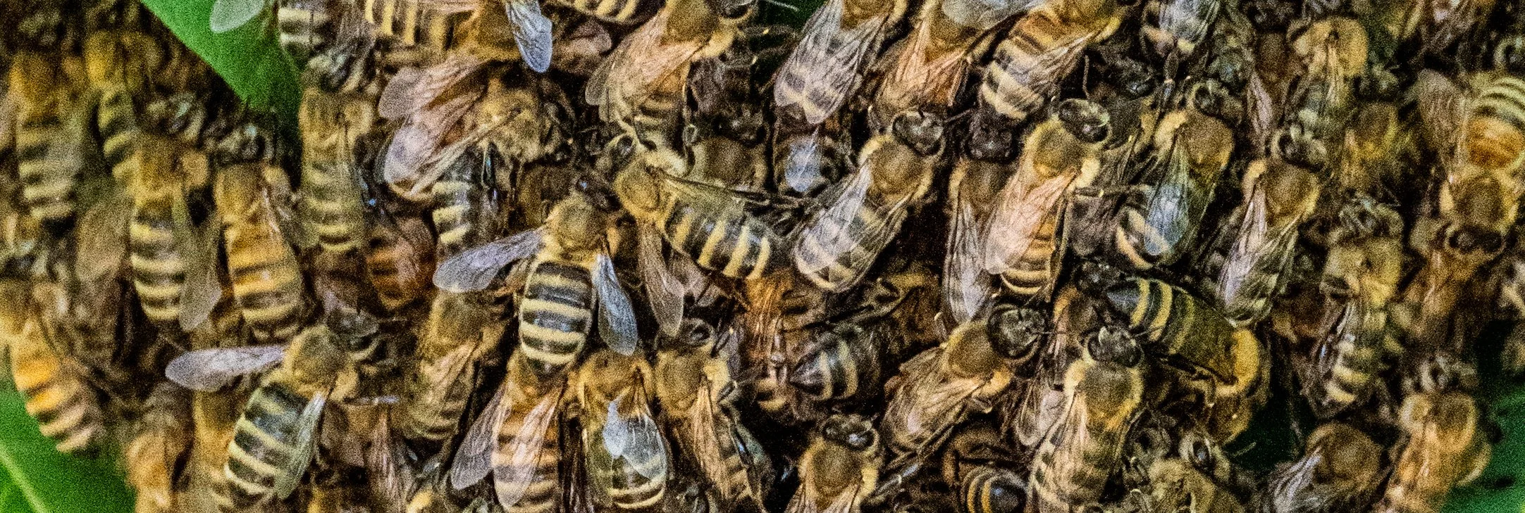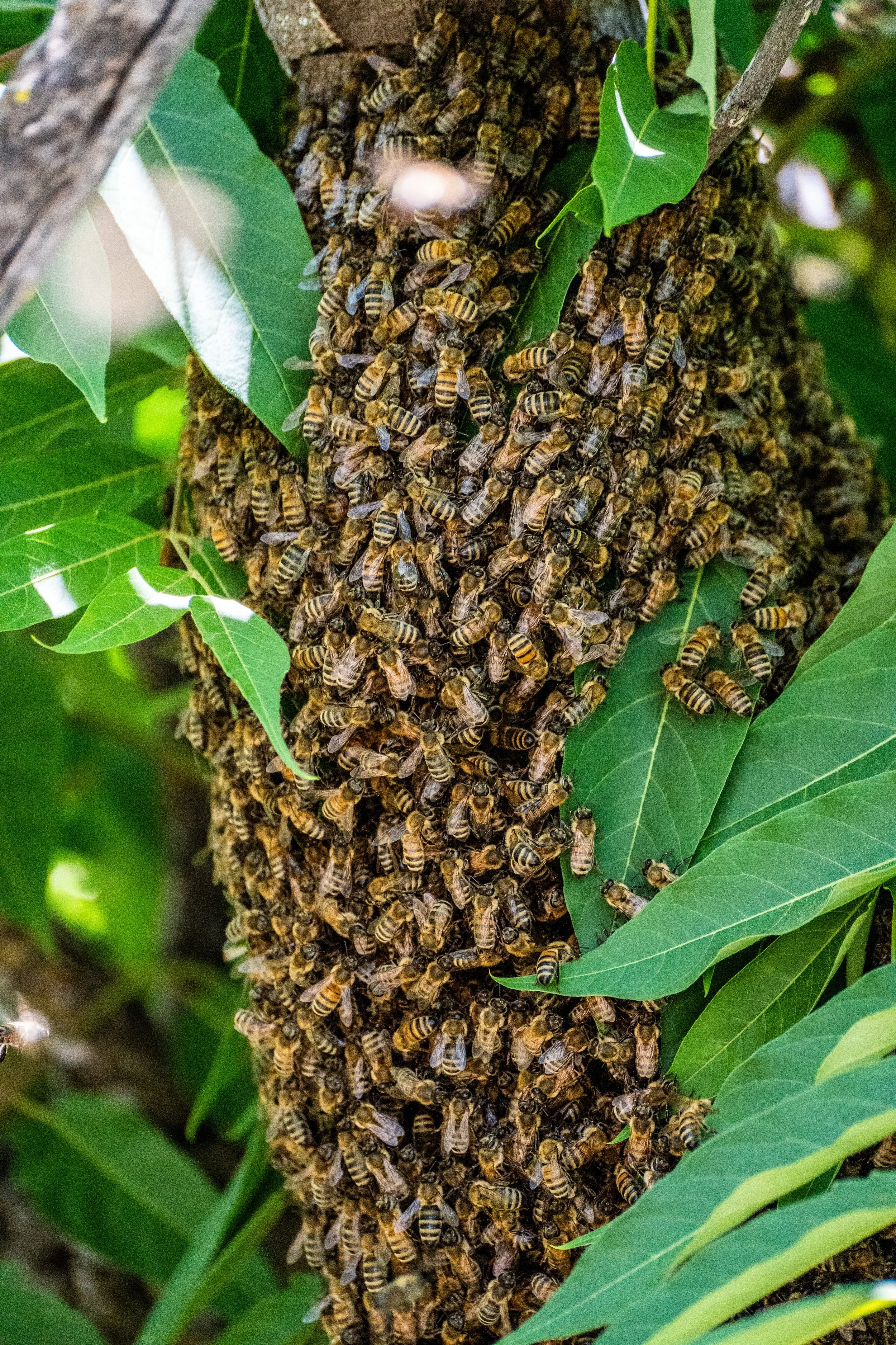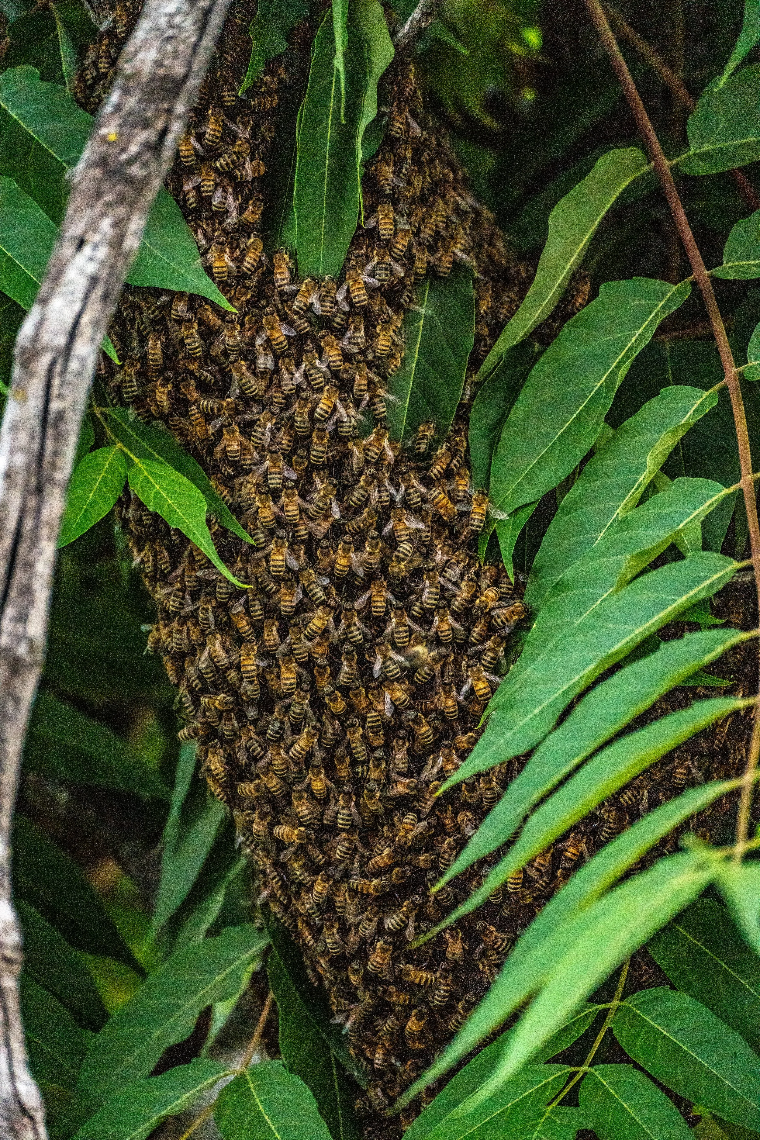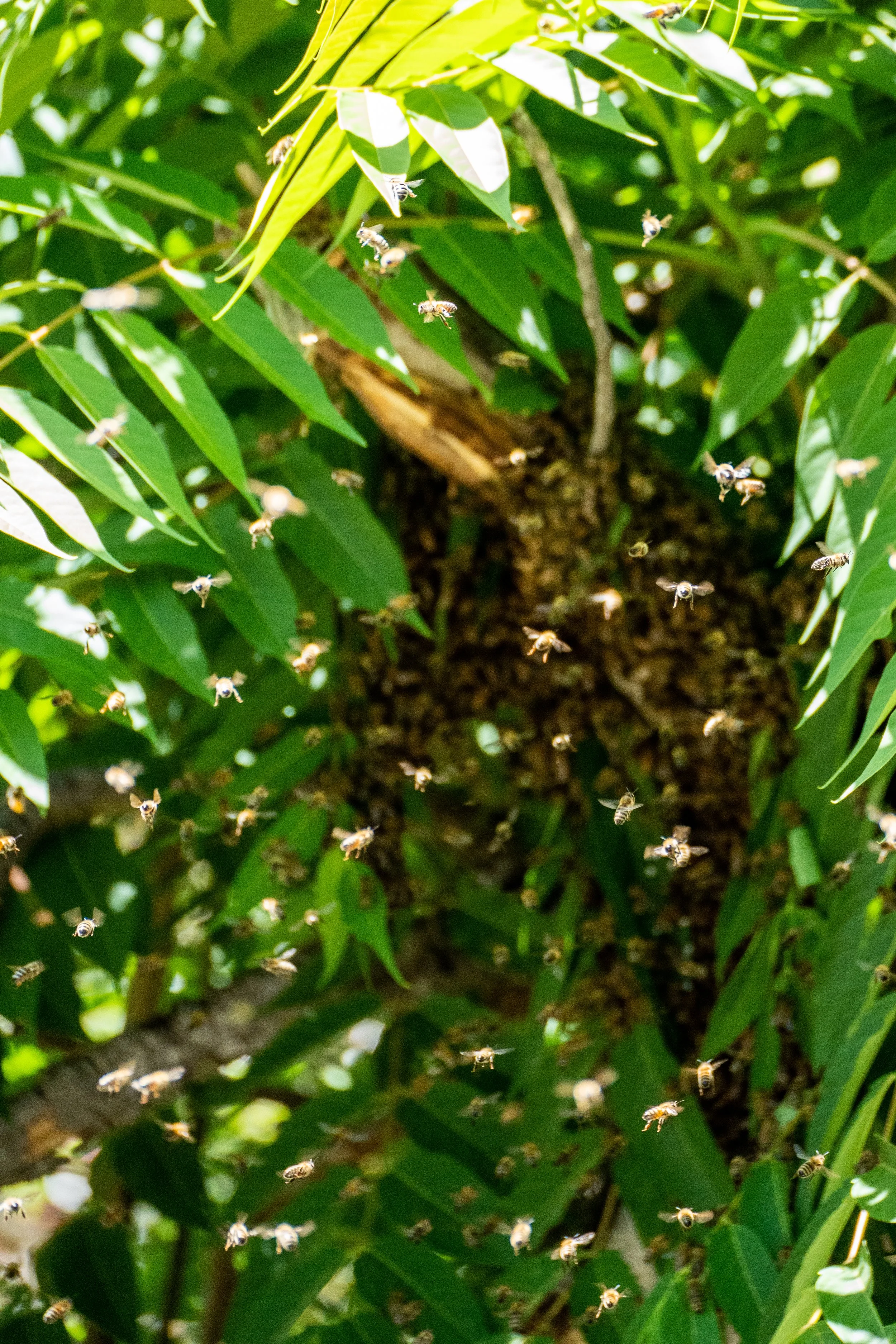 I recently had the opportunity to see a honey bee swarm up-close. Well, as close as I was willing to get — I used my telephoto lens. At all times. I was not actually close at all… I did get closer than everyone else in the house, though. Wusses.