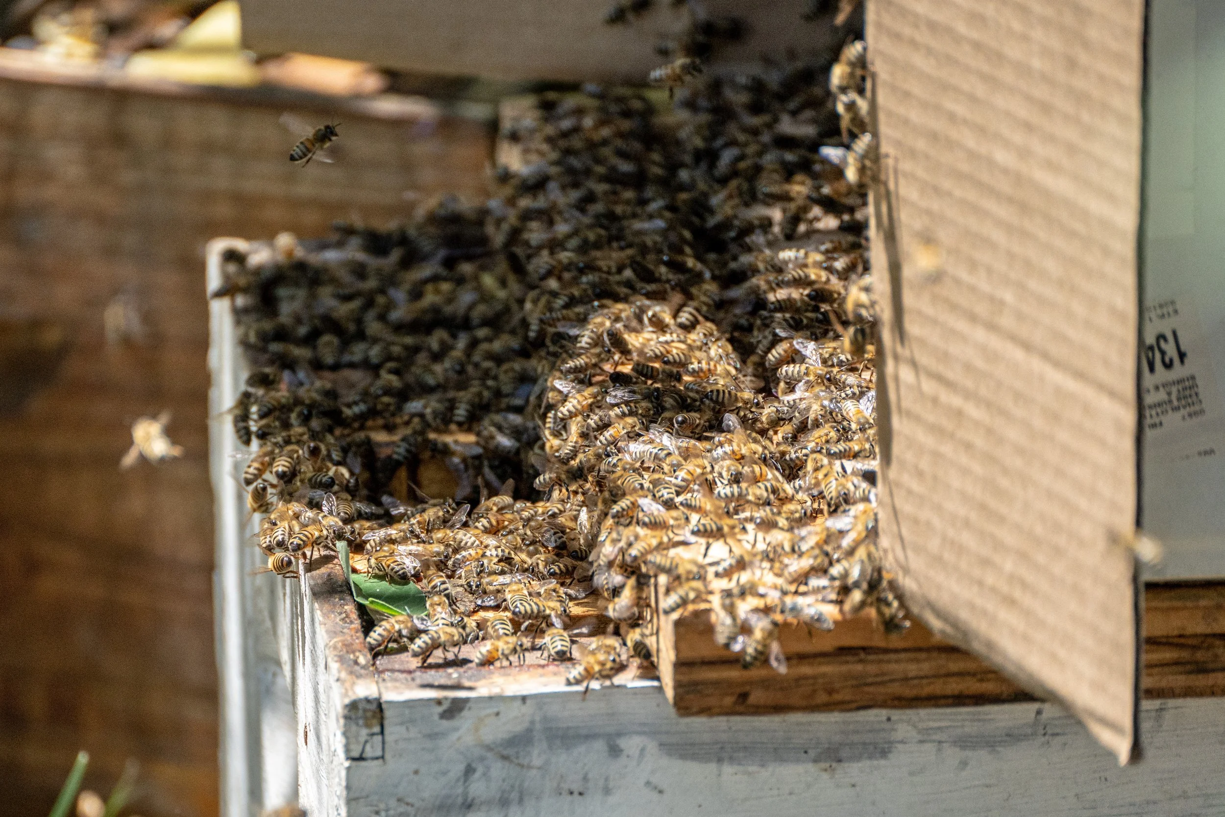 Bernie left the hive there for the rest of the day and came back at dusk to collect the hive once all the bees had returned “home” from foraging so he wouldn’t leave any stragglers.